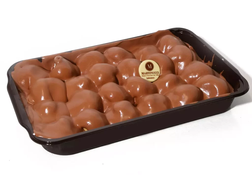 Bignè farciti con morbida panna e ricoperti di salsa al cioccolato